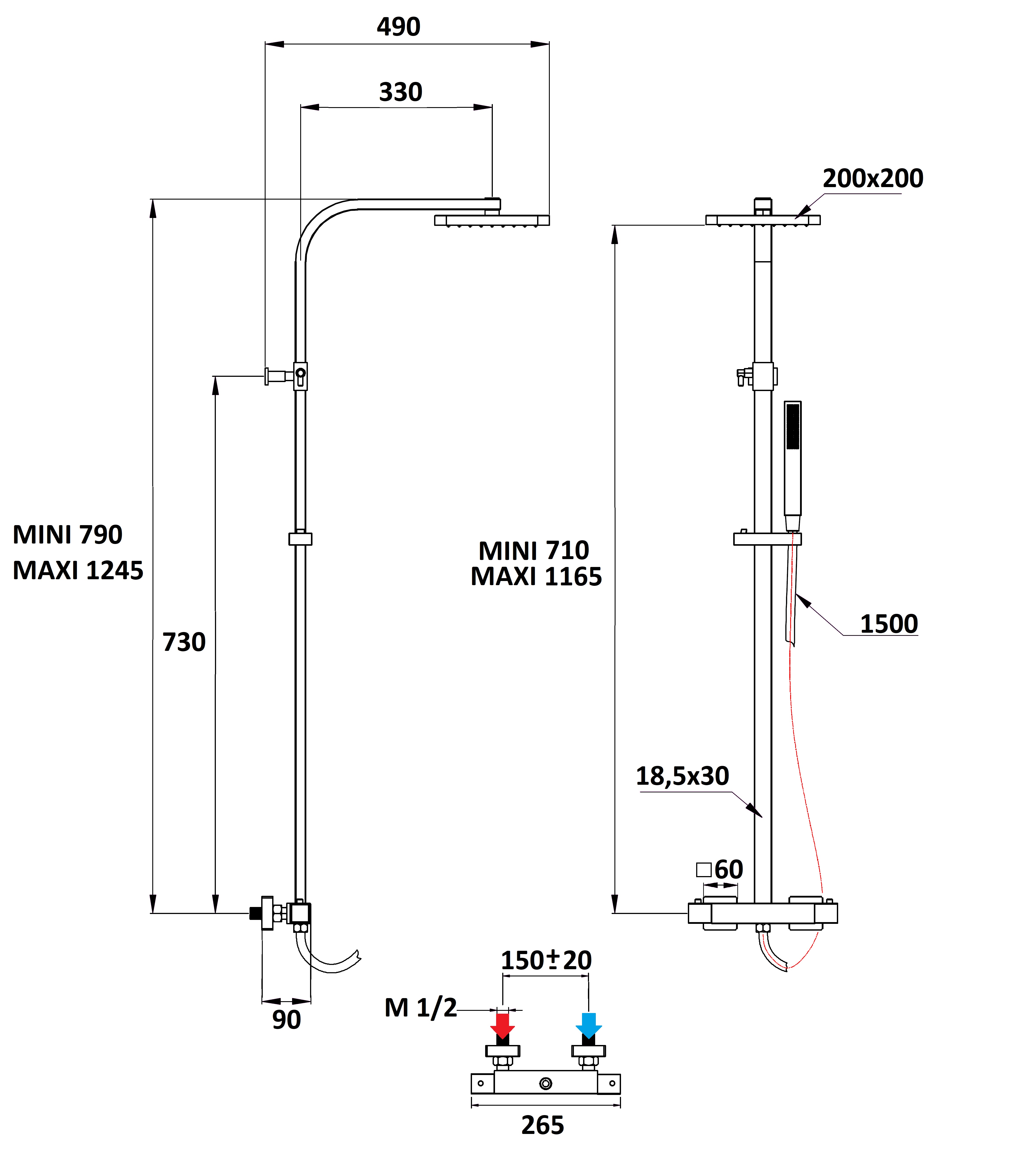 Garantie 5 ans frais de port offerts Anti-Brûlure Anticalcaire Corps tiède Téléscopique Tête Orientable