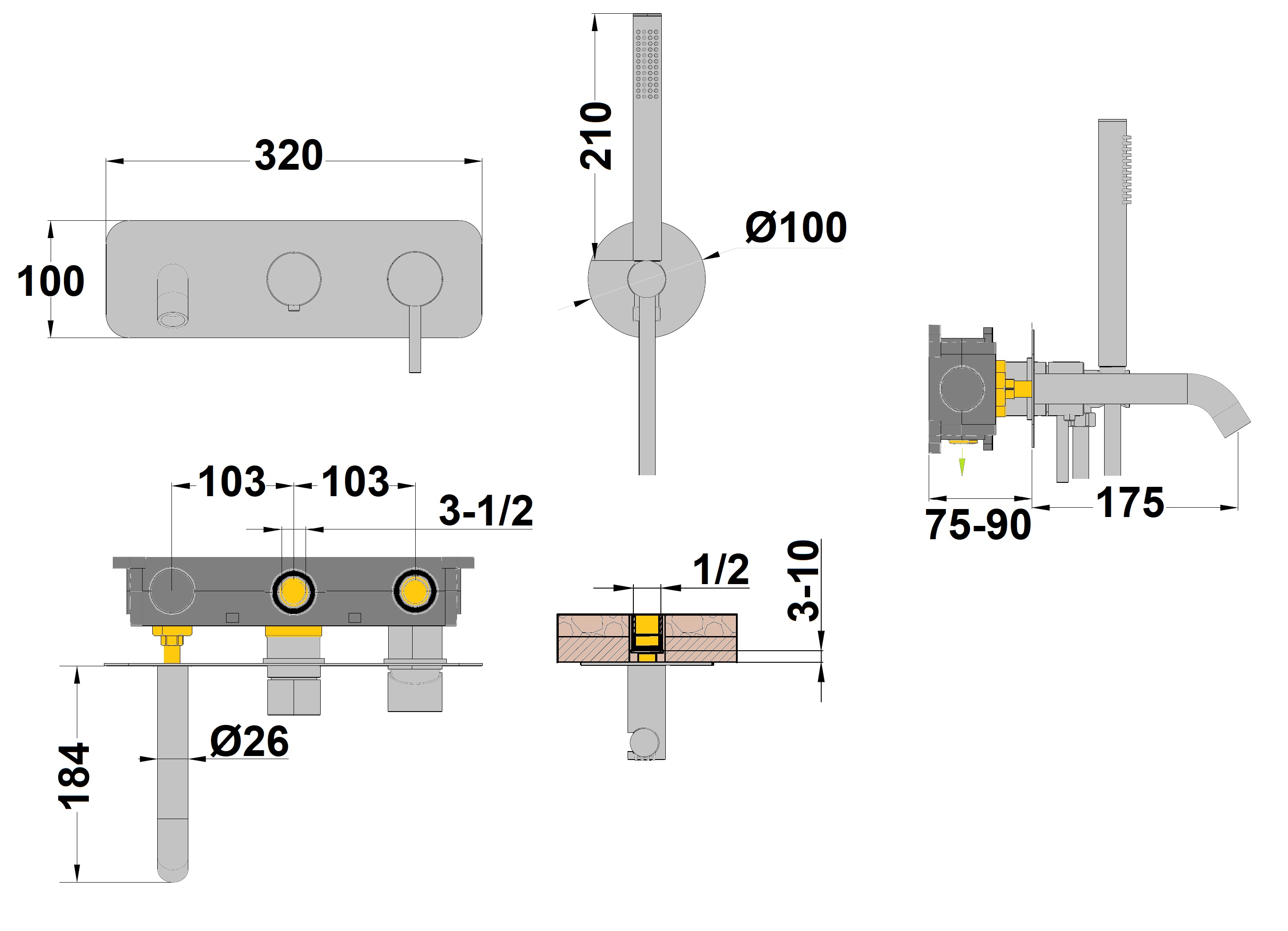 La garantie pour Mitigeur baignoire encastré avec bec Ortence PVD laiton brossé chez le fabricant Paini est de 5 ans pour les pièces techniques et de 1 an pour la finition PVD laiton brossé de la Ref. 78612LB (Mitigeur à encastrer Bain Douche Ortence PVD Laiton brossé).