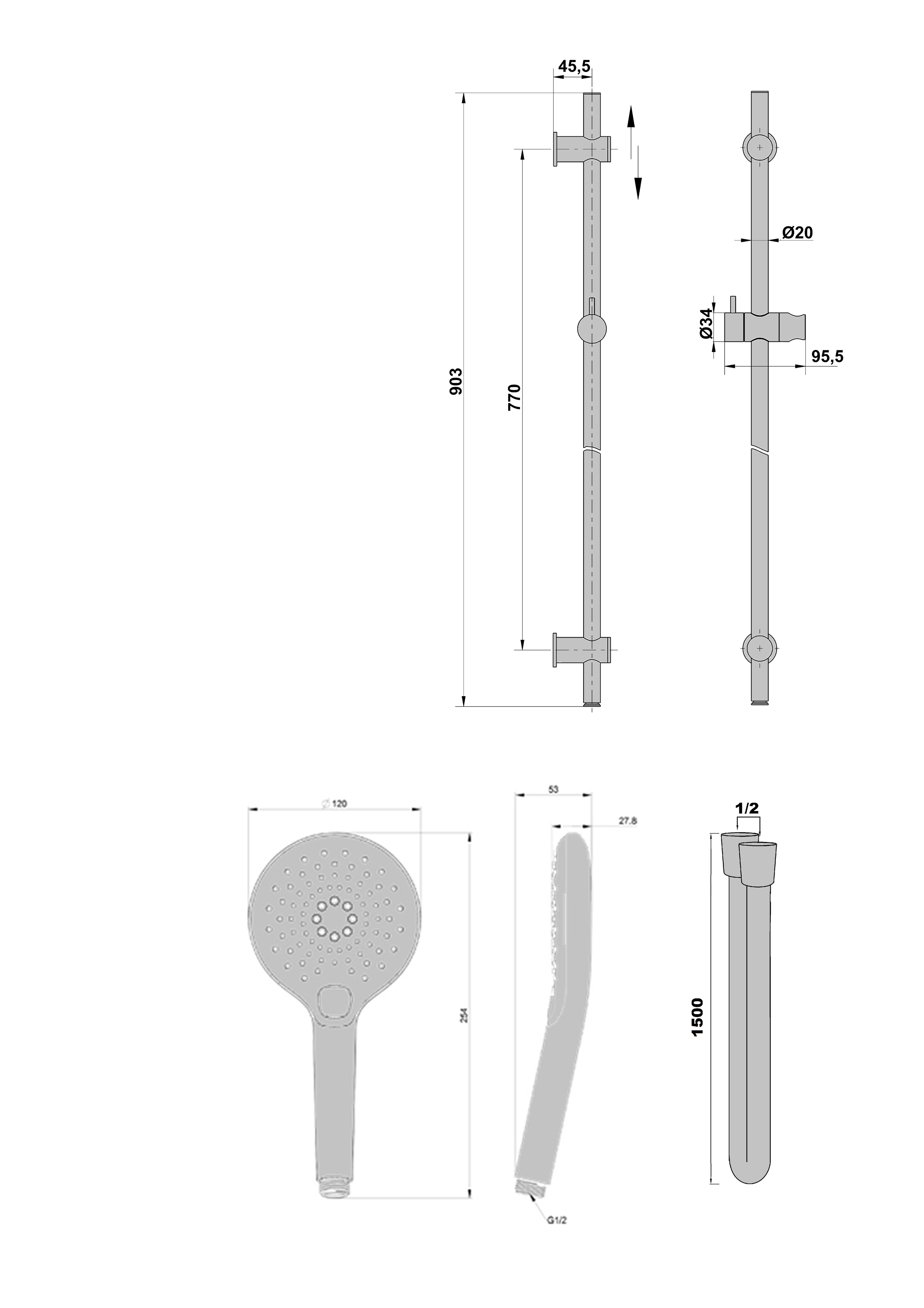 Descriptif technique de : Barre de douche 3 jets Cox Black Paini