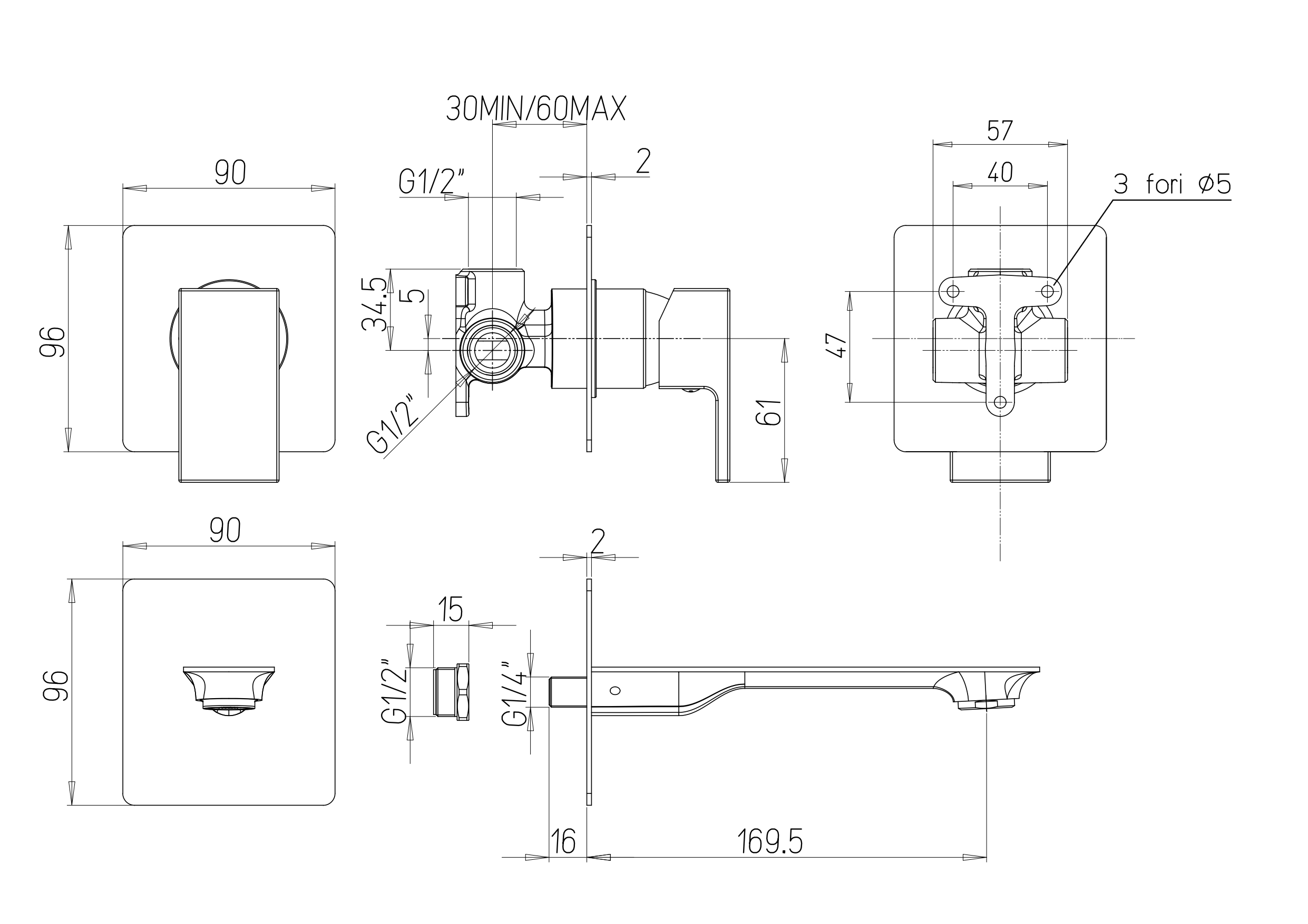 Descriptif technique de : Mitigeur lavabo mural Venti chrome Paini