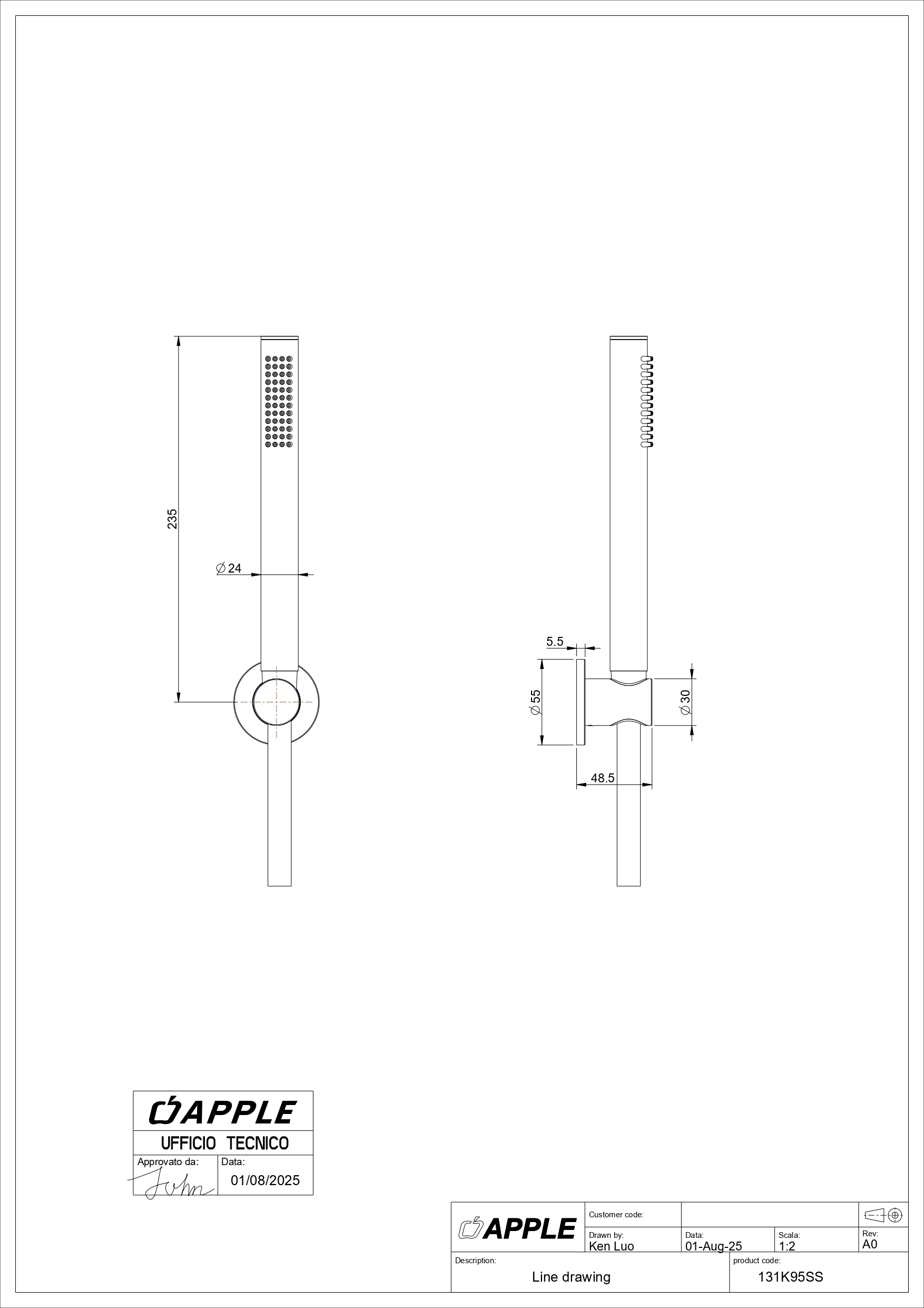 Descriptif technique de : Ensemble douchette 1 jet sur applique S304 inox Paini