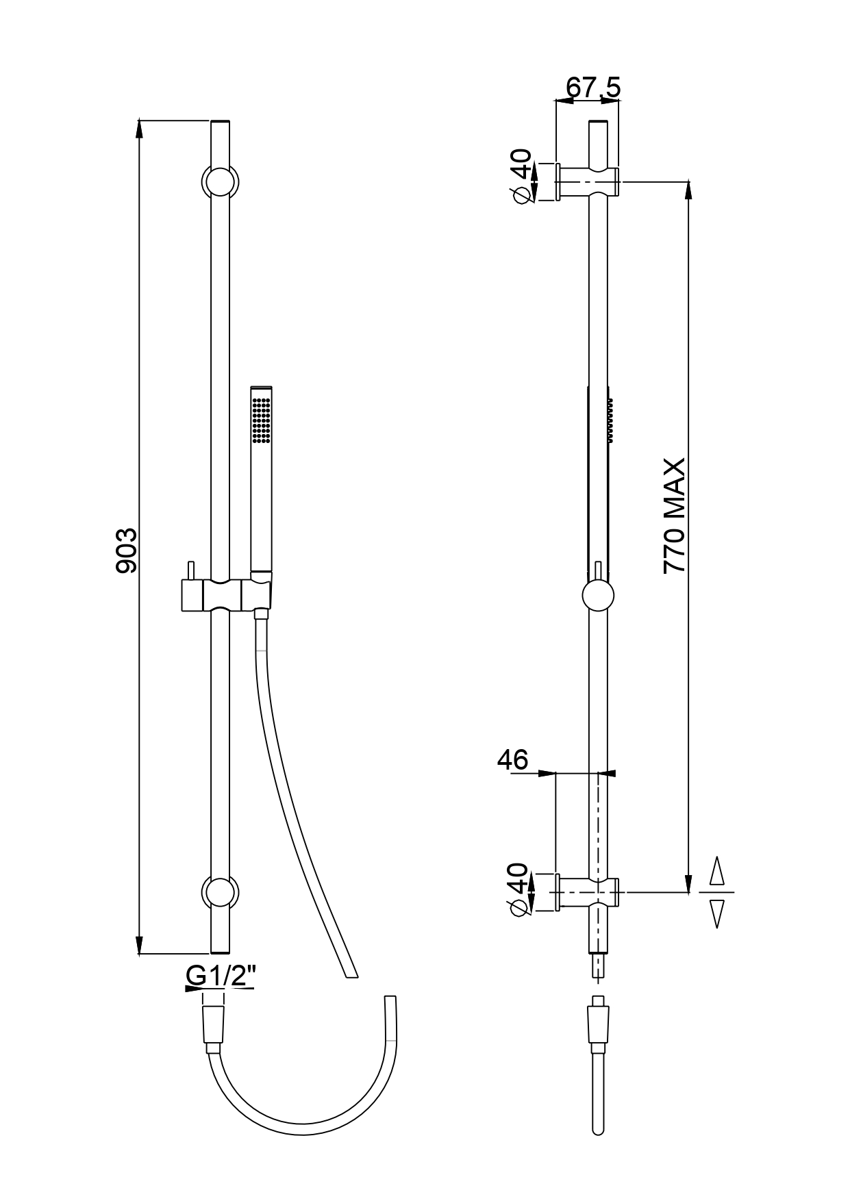 Longueur totale de la barre : 903 mm