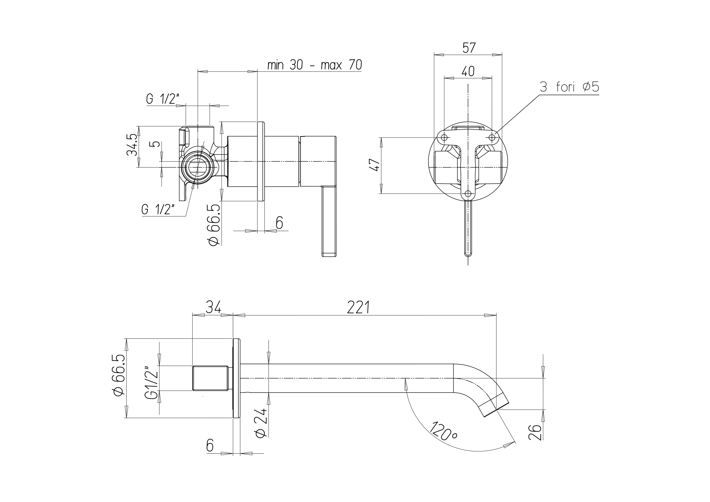 Descriptif technique de : Mitigeur lavabo mural bec long S304 inox Paini