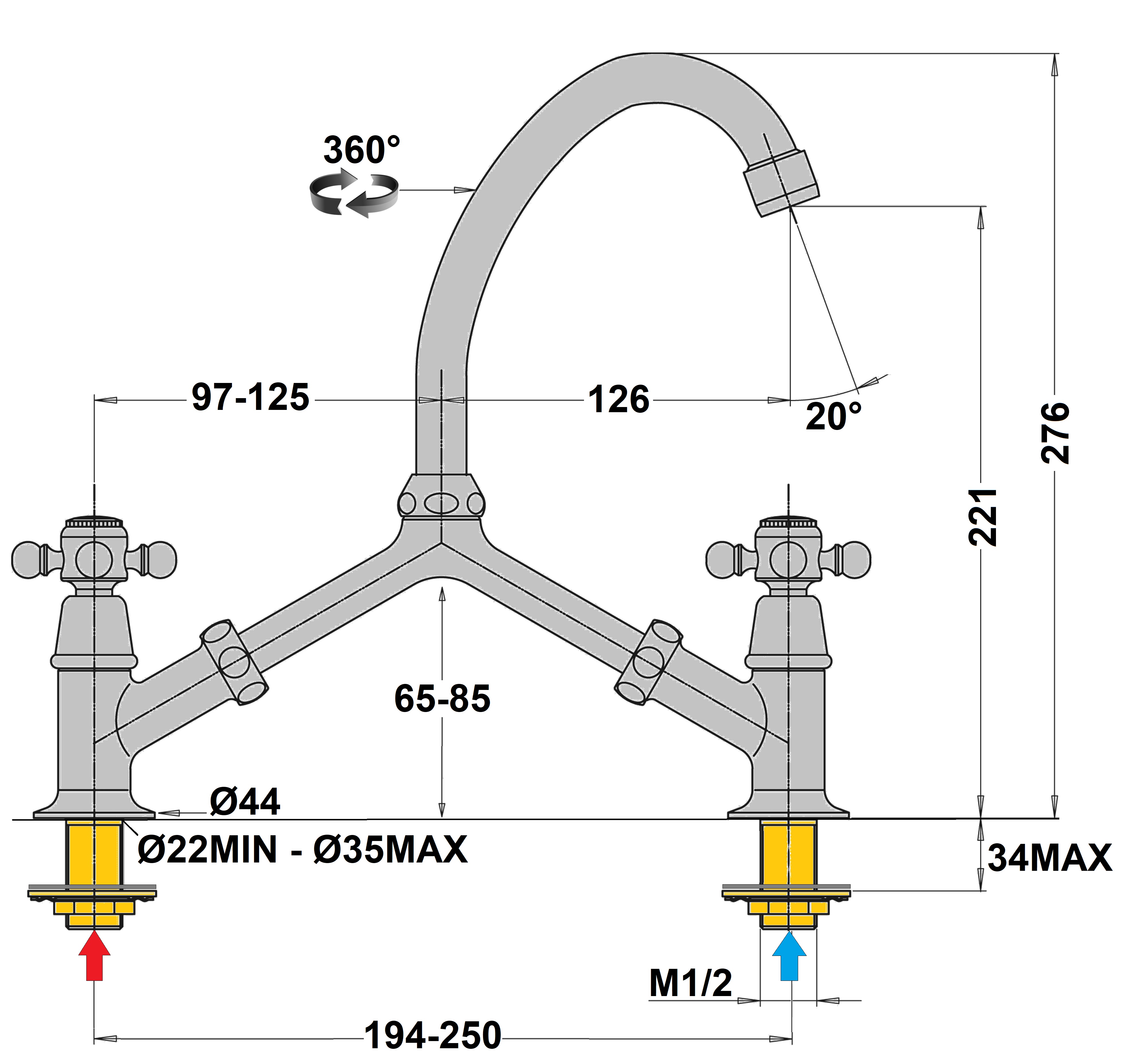 - Une flexibilité maximale grâce au bec mobile à 360° et à l’entraxe réglable.